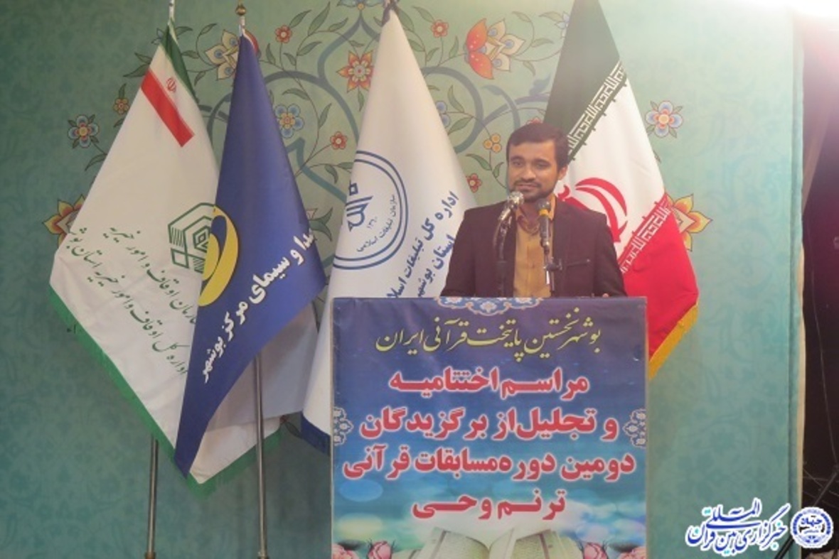 وی گفت: استان بوشهر در عرصه کتابت علمایی چون مرحوم مفتون را دارد، بزرگانی چون علامه محمودی، مرحوم معتقد اهرمی را دارد و در عرصه توسعهی قرائت قرآن در استان مراسم مقابله خوانی را داریم، خدمات قرآنی مانند شیوههای قرائت در انواع و سبک های مختلف استان فوقالعاده بینظیر است، بوشهر با عنایات الهی و به همت شما جامعه قرآنی نخستین پایتخت قرآنی ایران و چارک اولین دهکده قرآنی ایران شد.
