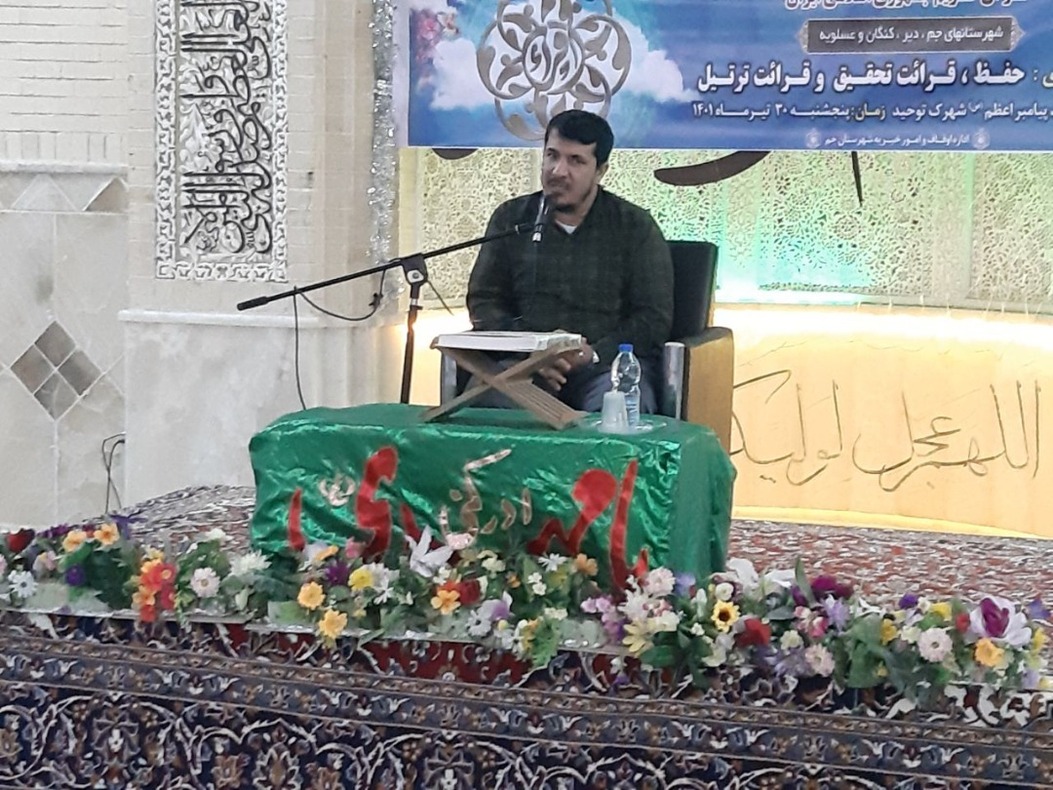 به گزارش ایکنا از بوشهر، مسجد پیامبر اعظم(ص) شهرک توحید شهر جم، میزبان ۱۶۰ نفر از آقایان و بانوان شرکت‌کننده از منطقه ۳ جنوب استان بوشهر در چهل‌و‌پنجمین دوره از مسابقات قرآنی مرحله شهرستانی ادارات اوقاف جم و ریز، دیر، کنگان و عسلویه بود.