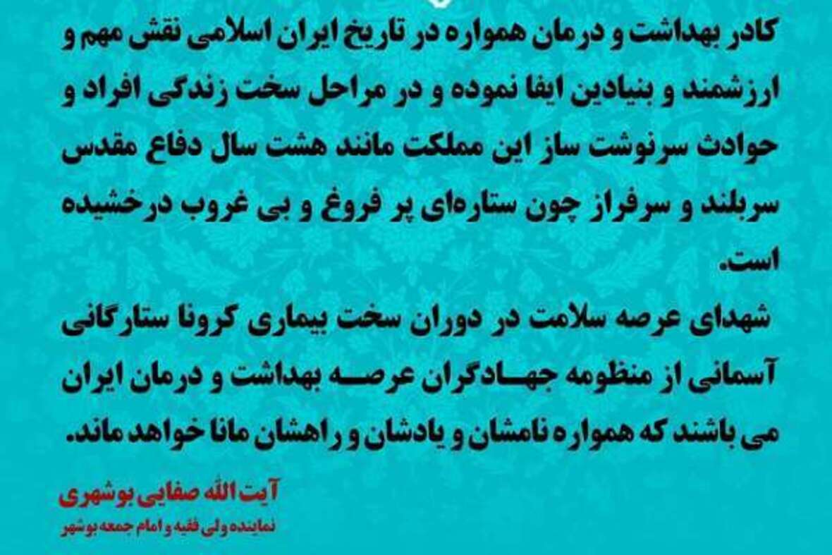 یادآور میشود، انتشار بیانات رهبر معظم انقلاب اسلامی، آیتالله غلامعلی صفاییبوشهری، اهتزار تمثال شهدای «مدافع سلامت» از دیگر فصول منتشر شده در صفحات نخستین یادنامه پاسداشت است.