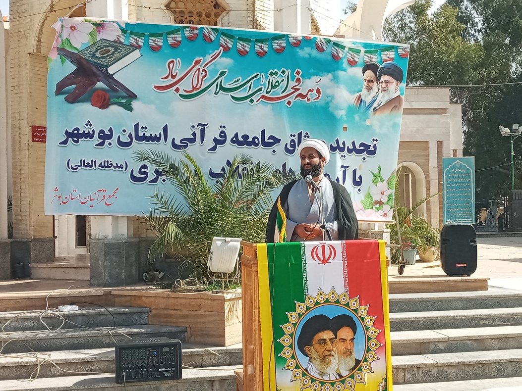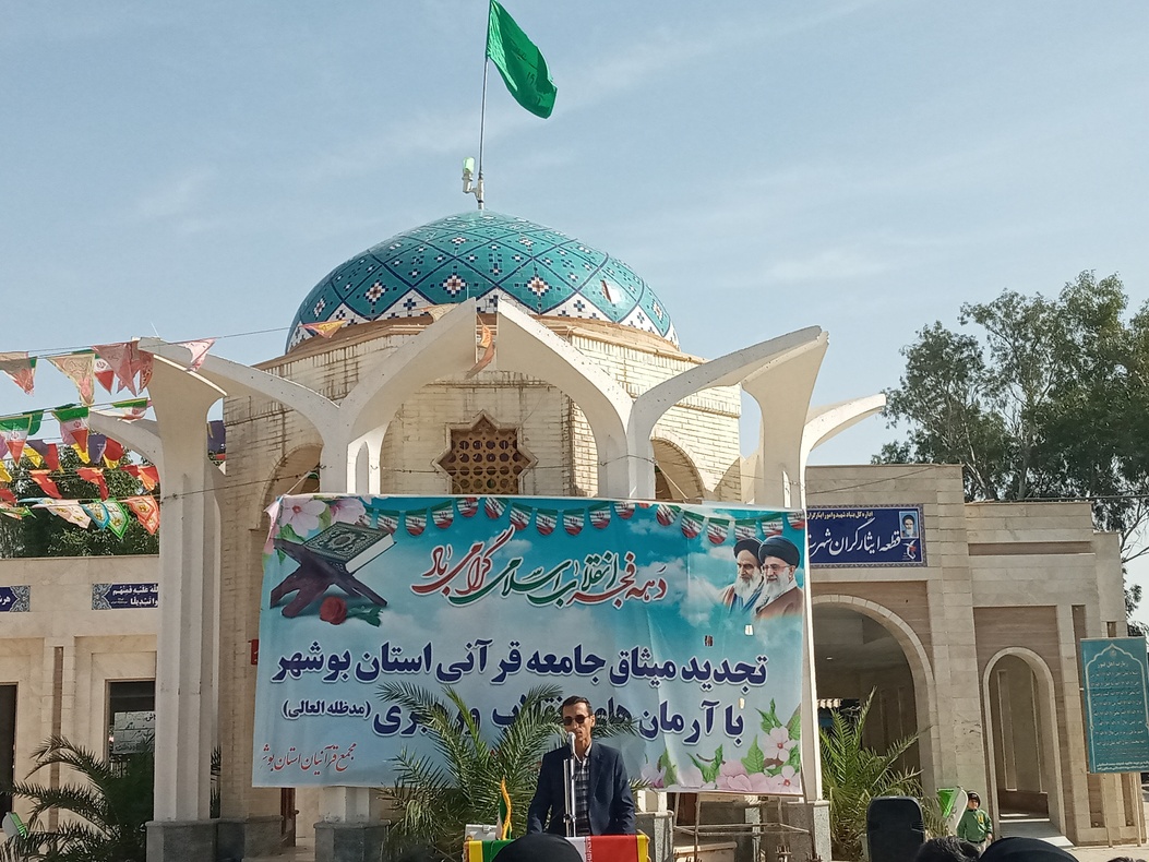 گل افشانی مزار شهدا، همخوانی سرودهای انقلابی توسط جامعه قرآنی استان بوشهر و همچنین بانگ لبیک یا خامنهای در راستای تجدید بیعت با رهبر معظم انقلاب اسلامی و قرائت بیانیه جامعه قرآنی از دیگر برنامههای این گردهمایی بود.