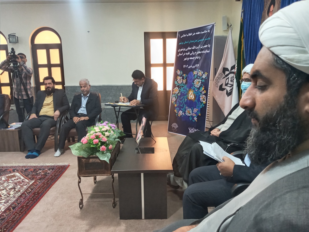به گزارش ایکنا از بوشهر، دیدار آیتالله صفایی بوشهری، نماینده ولی فقیه در استان و امام جمعه بوشهر با هنرمندان حوزه هنری، روز گذشته، ۲۶ فروردینماه، در مجتمع فرهنگی و پژوهشی آدینه محله شهید مدرس منطقه یک شهر بوشهر برگزار شد.