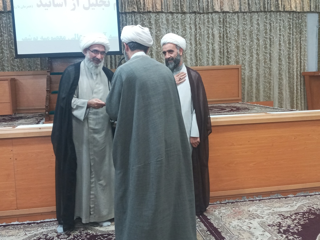به گزارش ایکنا از بوشهر، بهمناسبت هفته معلم و گرامیداشت یاد شهید مرتضی مطهری آیین تجلیل از اساتید ممتاز مدرسه علمیه معصومیه(س) بوشهر و خانوادههای آنها، عصر روز گذشته، دوازدهم اردیبهشتماه، در محل مهدیه امام خمینی(ره) منطقه یک محله ایثار این شهر برگزار شد.