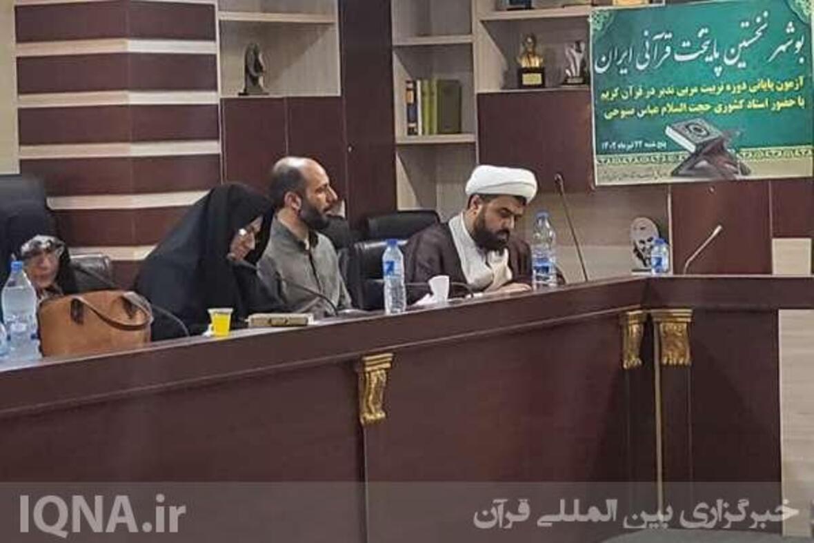 به گزارش ایکنا از بوشهر، هفتمین دوره از کلاسهای آموزشی تربیت مربی تدبر در قرآن کریم ویژه فعالان قرآنی بوشهر و گناوه، روز گذشته ۲۲ تیرماه، طی سه جلسه، با مدرسی حجتالاسلام والمسلمین عباس صبوحی از شهر قم، که از سوی مؤسسه فرهنگی قرآن و عترت طاها بوشهر و با همکاری مؤسسه قرآنی حضرت رقیه(س) بوشهر و معاونت فرهنگی و رسانهای ادارهکل فرهنگ و ارشاداسلامی استان بوشهر در محل سالن جلسات این ادارهکل برگزار شد.